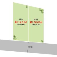 | 土地面積 | A号地 約114.52㎡(約34.64坪) B号地 約108.68㎡(約32.87坪) |